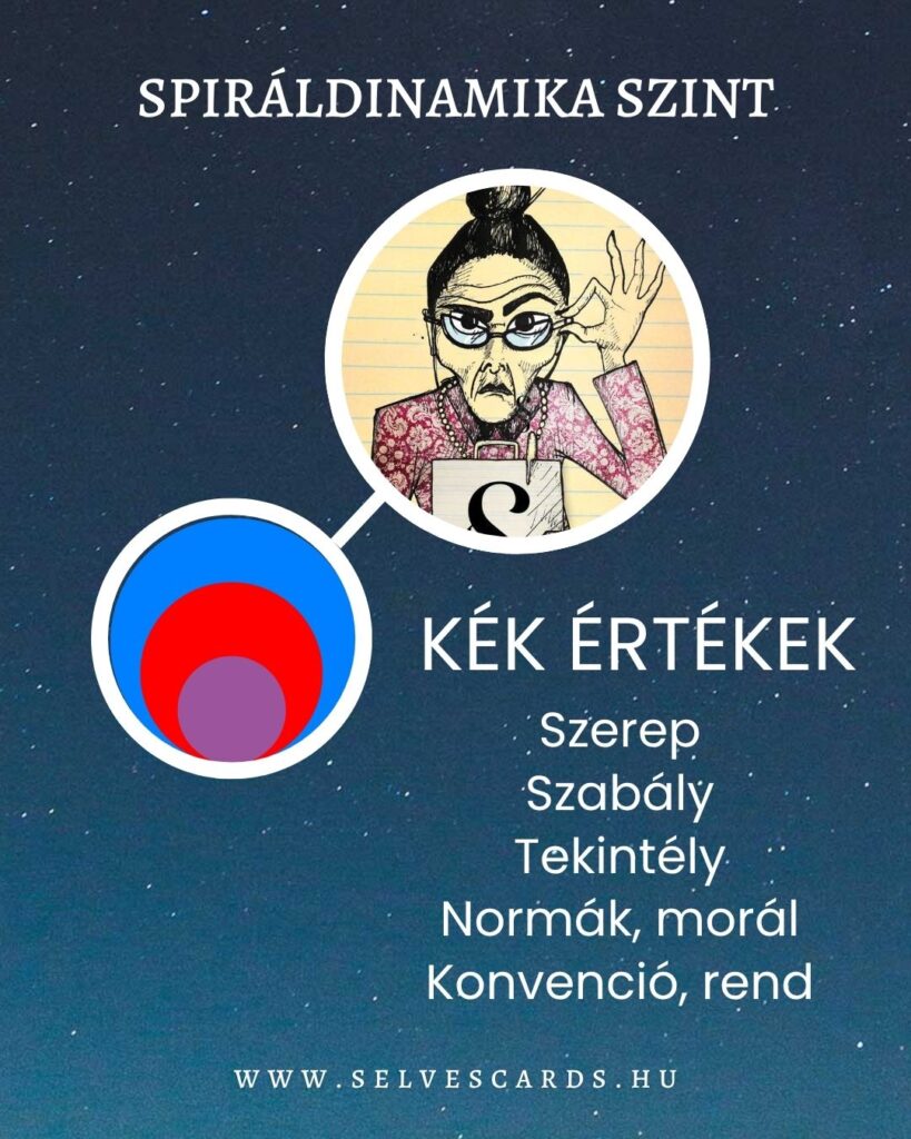 A kék szint fontos értékei a szabályok betartása, a normákhoz és konvenciókhoz való ragaszkodás, valamint a tekintély tisztelete.